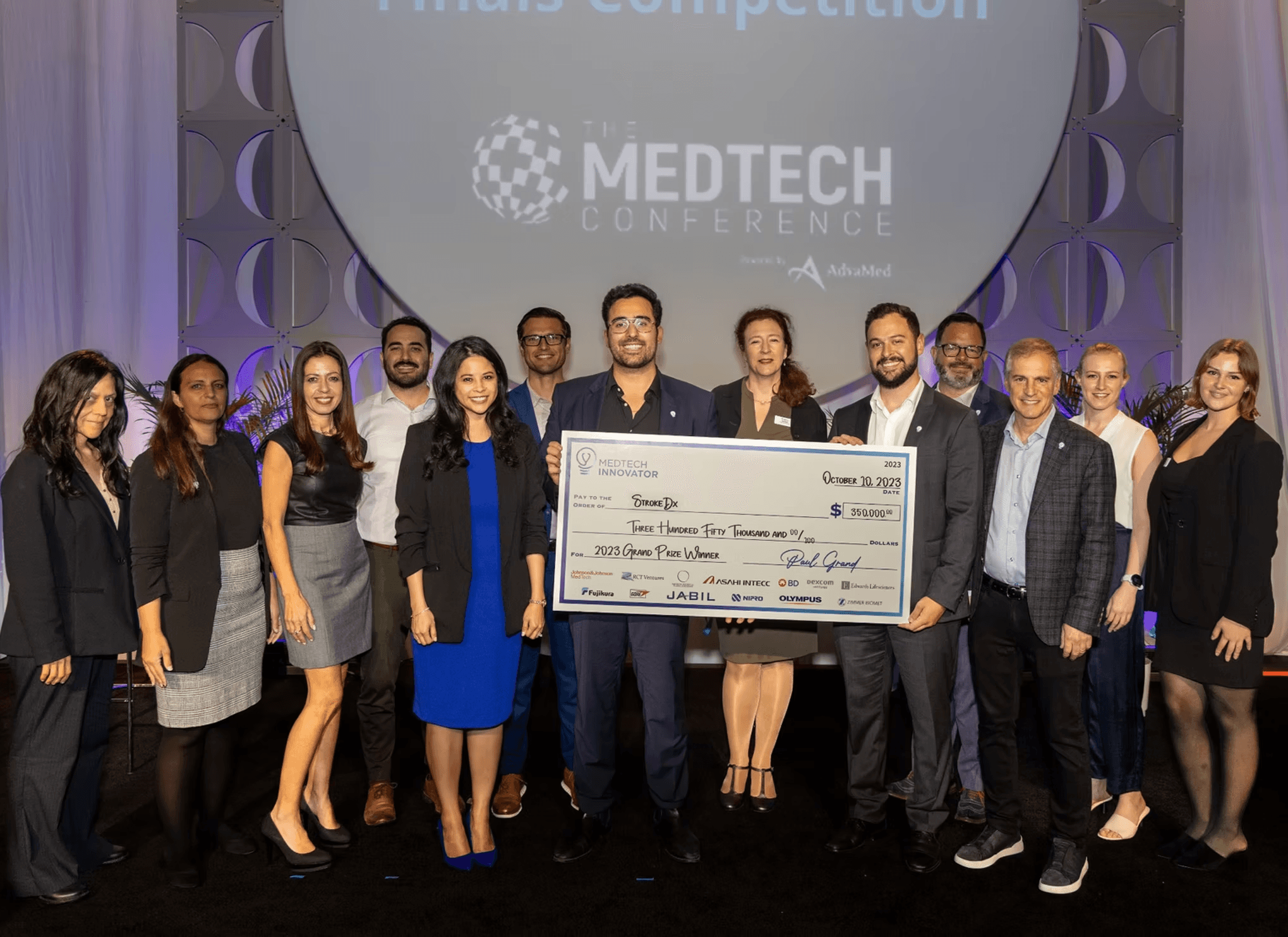 StrokeDx wins the 2023 Global Competition the world’s largest accelerator of medical technology companies. From among 5 finalists the winner was determined by live audience vote during The MedTech Conference, powered by AdvaMed.